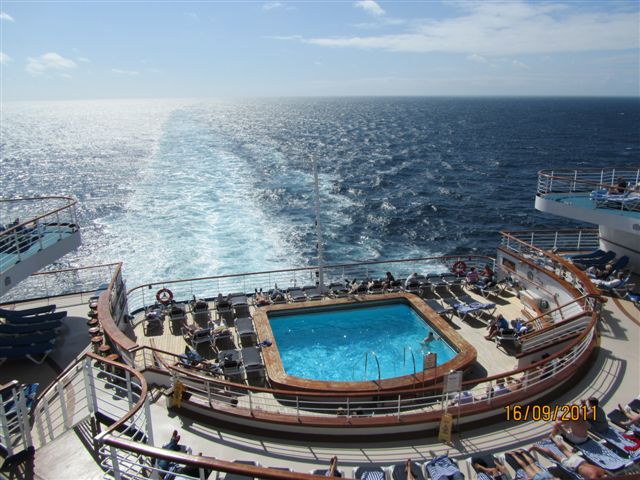 The pool at the back of the ship. So relaxing but very hot in the sun! Published September 26, 2011 at 640 × 480 in My favourite holiday pics… Share this:Share Share on LinkedIn (Opens in new window) LinkedIn Share on Facebook (Opens in new window) Facebook Share on X (Opens in new window) X Share on Pinterest (Opens in new window) Pinterest Email a link to a friend (Opens in new window) Email Like Loading...